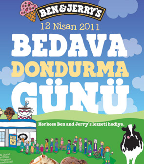 Bugün 12 Nisan, yani ünlü Ben&Jerry’s Dondurmalarının bedava dondurma günü. Bugün saat 13.00 ile 20.00 arasında herhangi bir Ben&Jerry’s dondurmacısına gidip bugüne özel olarak istediğiniz çeşitte 1 top dondurmayı bedava alabilirsiniz. Aşağıda bedava dondurma yiyebileceğiniz Ben&Jerry’s şubeleri bulunuyor. Dondurmalarının şahane olduğuna kefil olabilirim. Bugün bu adreslerden birinde olabileceksiniz mutlaka 1 top bedava dondurmanızı alıp bu lezzeti deneyin.