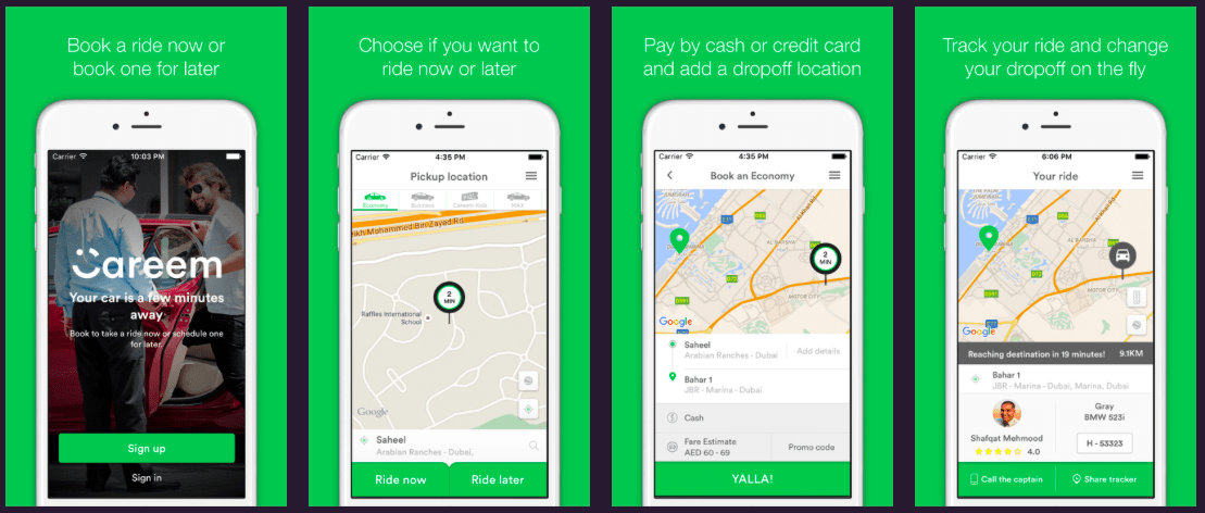 GooglePlay‘den ya da Appstore‘dan Careem’i indirerek hemen kullanmaya başlayabilirsiniz. Hadi Yallah! Let’s go 🙂